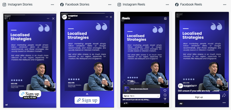 Many clients and their designers don’t understand why we request for certain dimensions when running Meta Ads because the impact that ad size has is usually underestimated. An experienced marketer will know that the ad size can make or break the ad because it impacts whether the messaging of your ad is visible and hence persuasive. If you can’t see it well, you can’t sell it well.